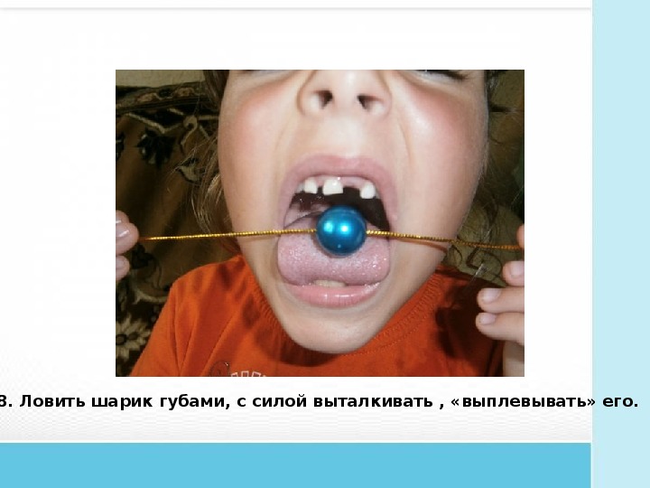 8. Ловить шарик губами, с силой выталкивать , «выплевывать» его.